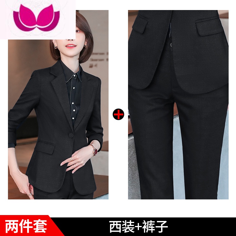 七斓西装外套女时尚气质女范高端正装经理职业装小西服套装女士 3XL 黑色长袖西装+61b黑色裤子