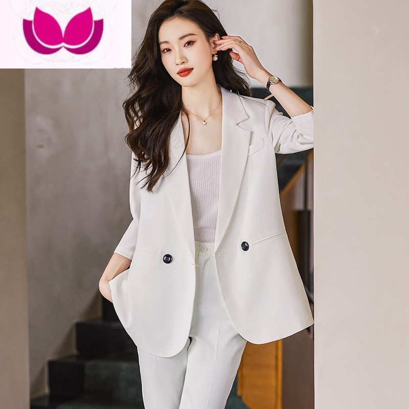 七斓白色西装外套女夏季薄款气质女范职业套装小个子七分袖休闲西服 2XL 757单件白色西装中袖