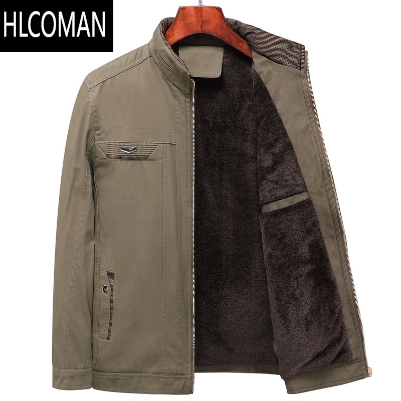 HLCOMAN中老年人男装立领加绒加厚夹克衫爸爸装外套中年男士棉加 190150到165斤穿 深卡其色加绒加厚款