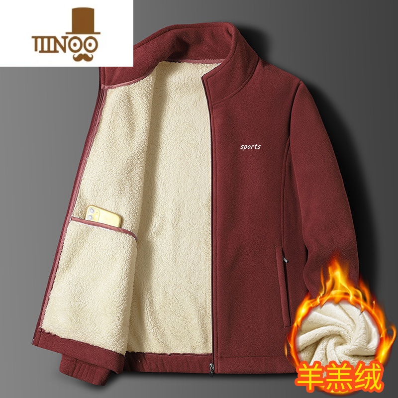 YANXU羔绒外套捉绒衣新款加绒加厚御寒保暖夹克男士摇粒绒男男 XXXL150-165斤 加绒LZH-922酒红