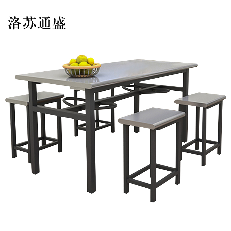 洛苏通盛不锈钢冷轧钢餐桌学生食堂公司职员户外桌椅组合1.2米餐桌+4把椅