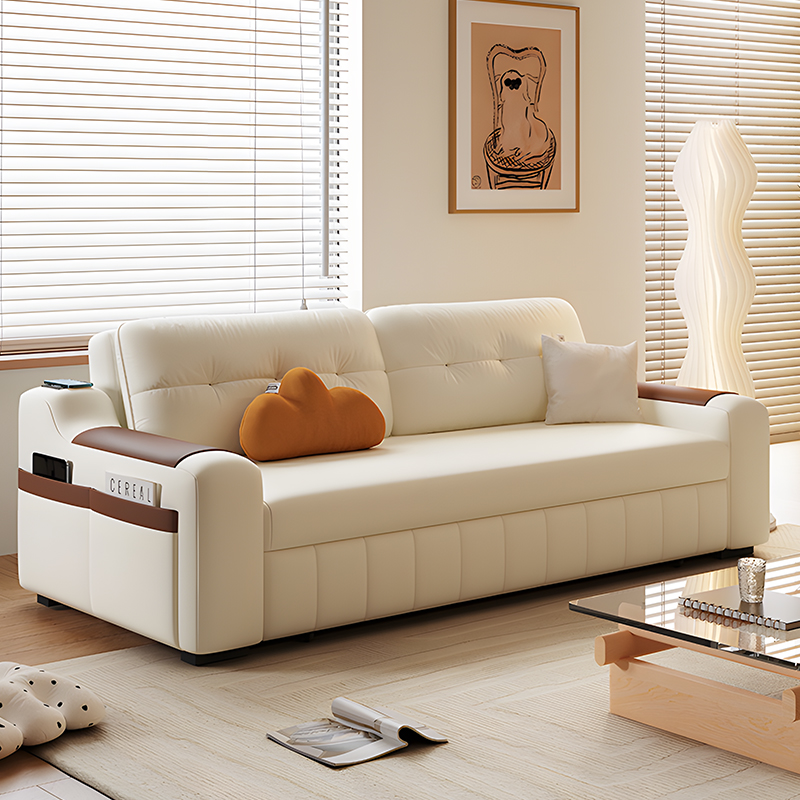 欧梵森现代简约多功能沙发床可伸缩折叠一体两用小户型智能充电沙发 储物箱+200详询客服 优质猫抓皮【乳胶款】+无线充电