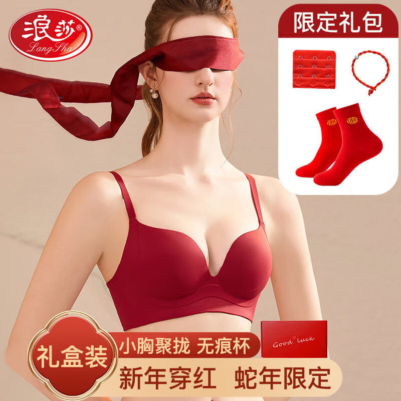 自营 浪莎本命年内衣女大红聚拢无痕杯文胸新年鸿运除夕跨年礼物2025蛇年 鸿运红色礼盒装 XL 36/80AB 2XL【38/85AB】 鸿运红色【礼盒装】