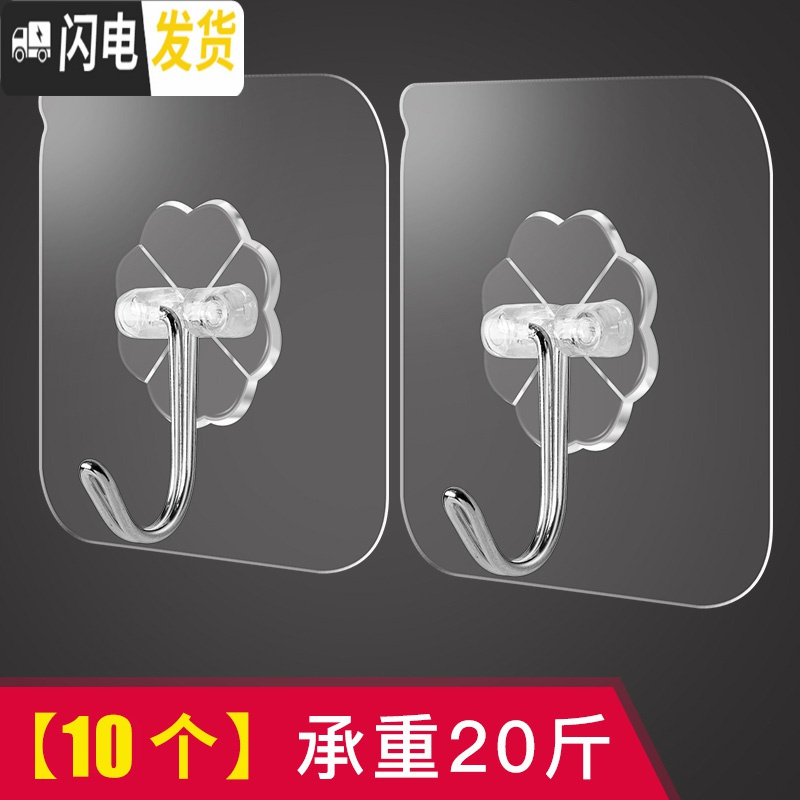 三维工匠挂钩强力无痕免打孔粘钩壁挂粘胶贴墙壁承重厨房挂勾无痕粘贴后 透明钜惠装【10个装】