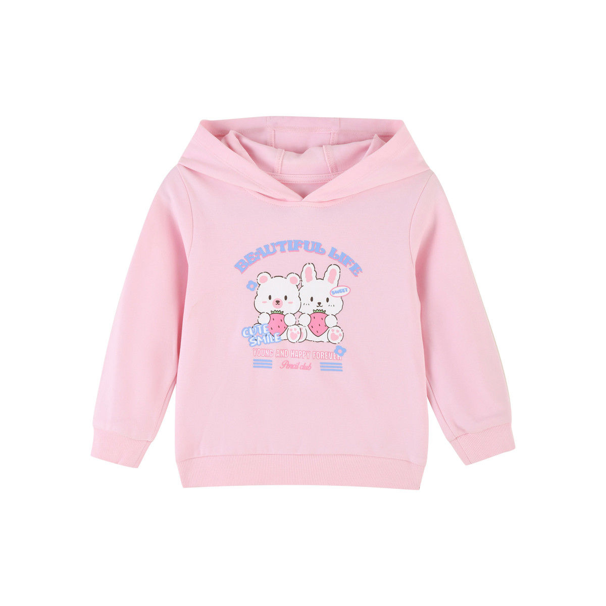【连帽T恤】秋季新款女童带帽长袖T恤卡通萌趣图儿童T恤休闲 110 粉红