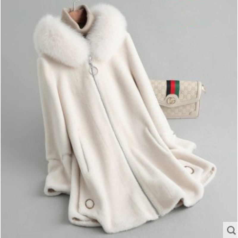 举翼王子羊剪绒大衣女2024新款冬季颗粒羊毛狐狸毛海宁皮草外套羊羔毛 XXL 米白色
