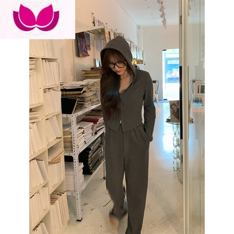 七斓时尚洋气运动套装女宽松显瘦韩版学生炸街休闲套卫衣连学 XXL建议121-140斤 深灰棉质两件套