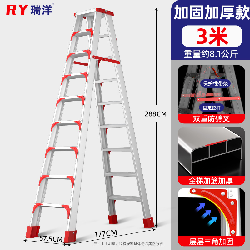 铝合金人字梯家用梯子4米加厚工程梯折叠非伸缩超高安全3米长爬梯 升级加固加厚款3米