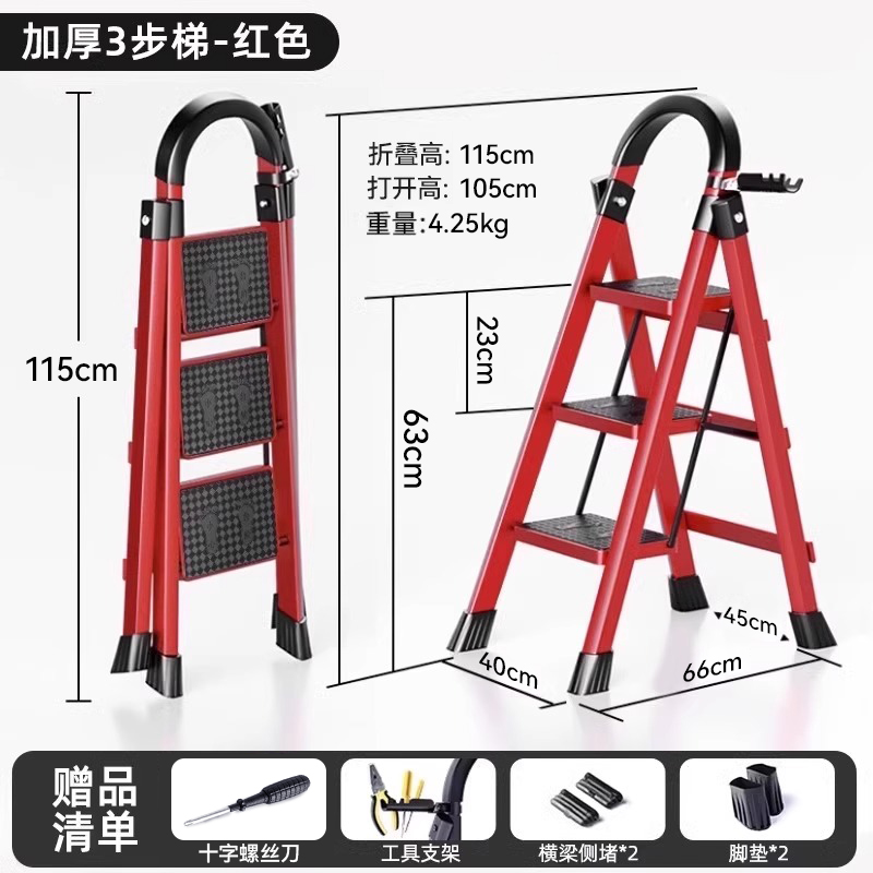 梯子家用折叠室内多功能人字梯步梯安全加厚伸缩小型便携四步1099 红色加厚三步梯升级安全卡扣稳固不晃动