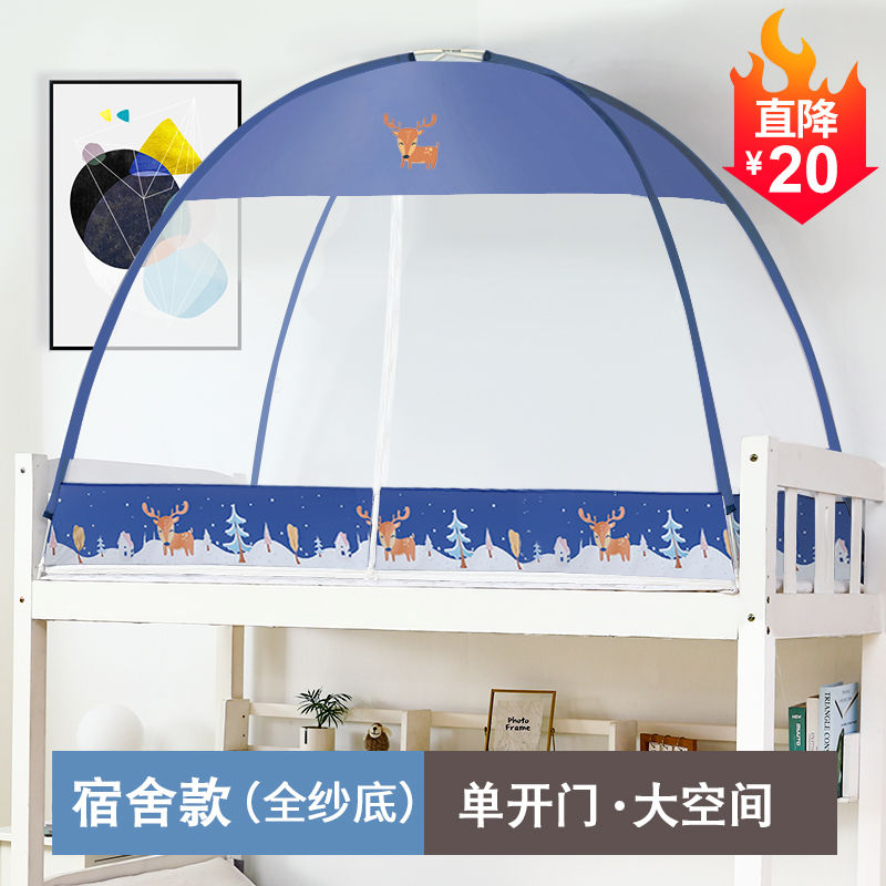 圆顶公主蒙古包蚊帐二开1.2学生宿舍1.8m家用拉链1.5米有底蚊帐_2 1.5m(5英尺)床 全米黄色