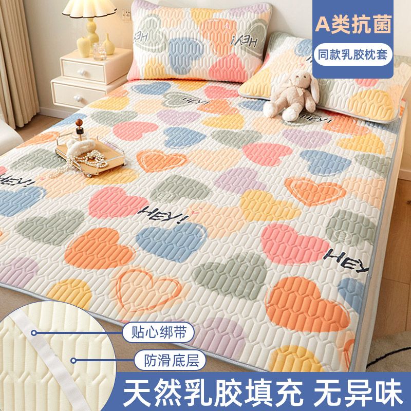 南极人夏季冰丝乳胶凉席三件套宿舍学生单人家用折叠可水洗空调宿 90x200cm乳胶单凉席 七彩爱心加厚乳胶加倍凉感