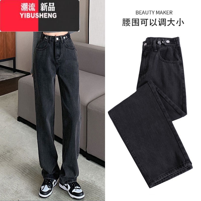 YIBUSHENG阔腿牛仔裤女小个子2023春秋新款高腰浅色美式高街学生窄版直筒子 L 黑灰色九分裤