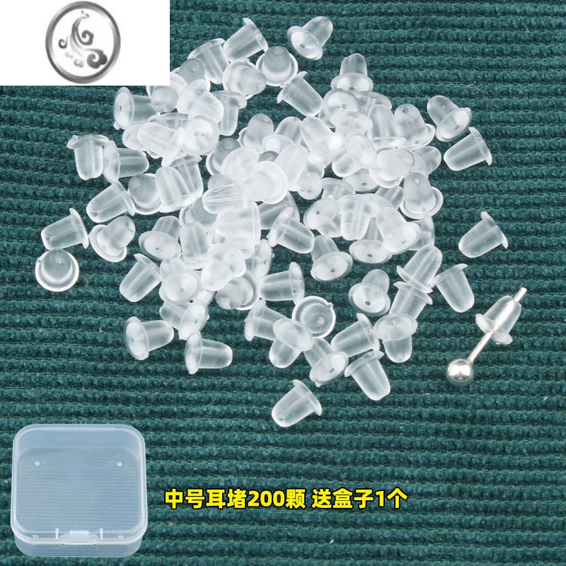 JiMi耳堵硅胶透明耳钉堵固定耳环后塞防过敏塑料耳帽耳扣耳背皮堵胶塞 透明子弹耳堵中号200颗+盒子