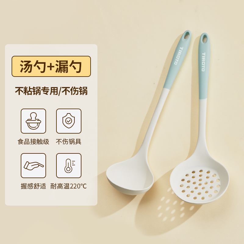 硅胶铲锅铲不粘锅专用家用炒菜铲子汤勺漏铲食品级耐高温厨具套装1 食品级硅胶-汤勺+漏勺【2件套不伤锅/耐高温】