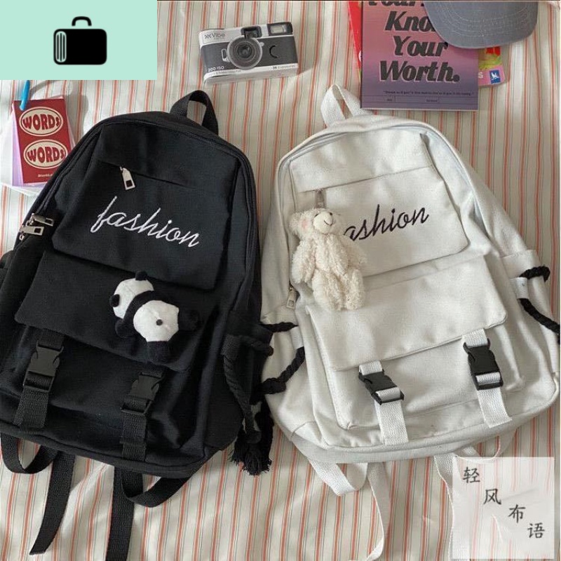 日系暗黑初高中女学生书包韩国ins港风复古工装双肩包帆布背包男NEWLAKE 黑色加厚版【熊猫挂件】