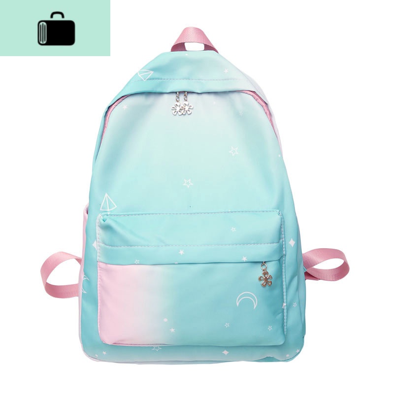 渐变色初中生书包女中学生小学生双肩包韩版高中生轻便大容量背包NEWLAKE 绿色