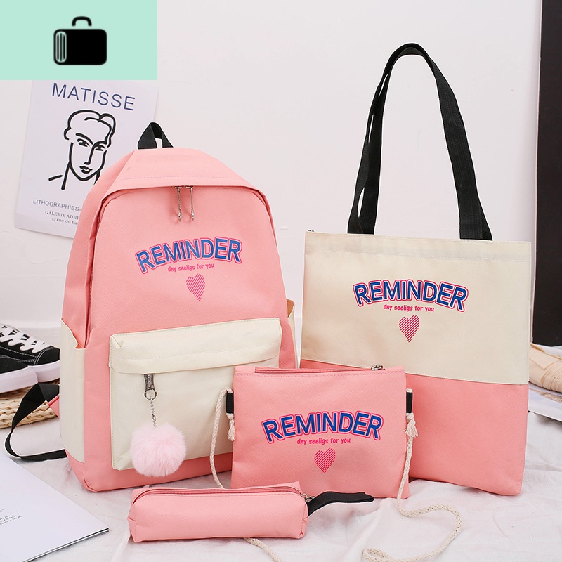 书包女中学生少女韩版高中帆布初中学生双肩包小学生校园百搭背包NEWLAKE 粉色字母桃心